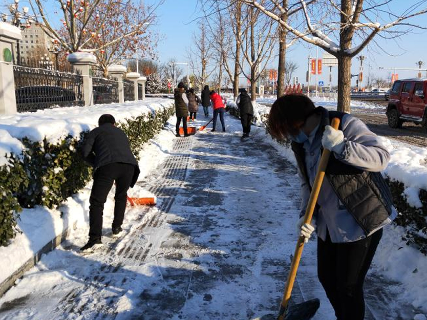 公司机关组织党员干部职工对公司院内及门前三包规模内人行横道等重点部位积雪举行整理